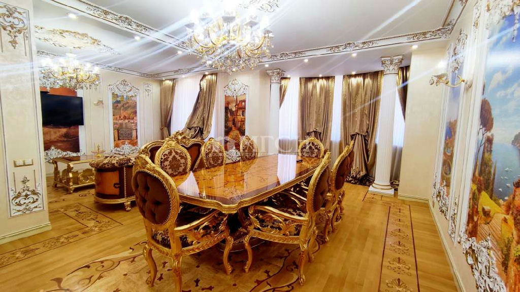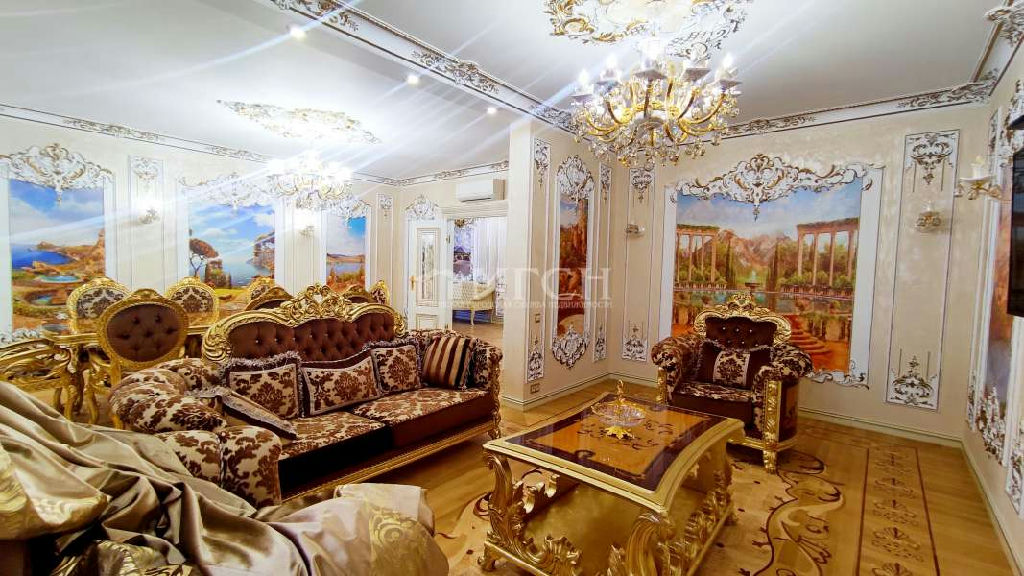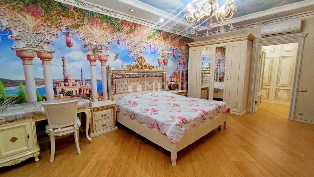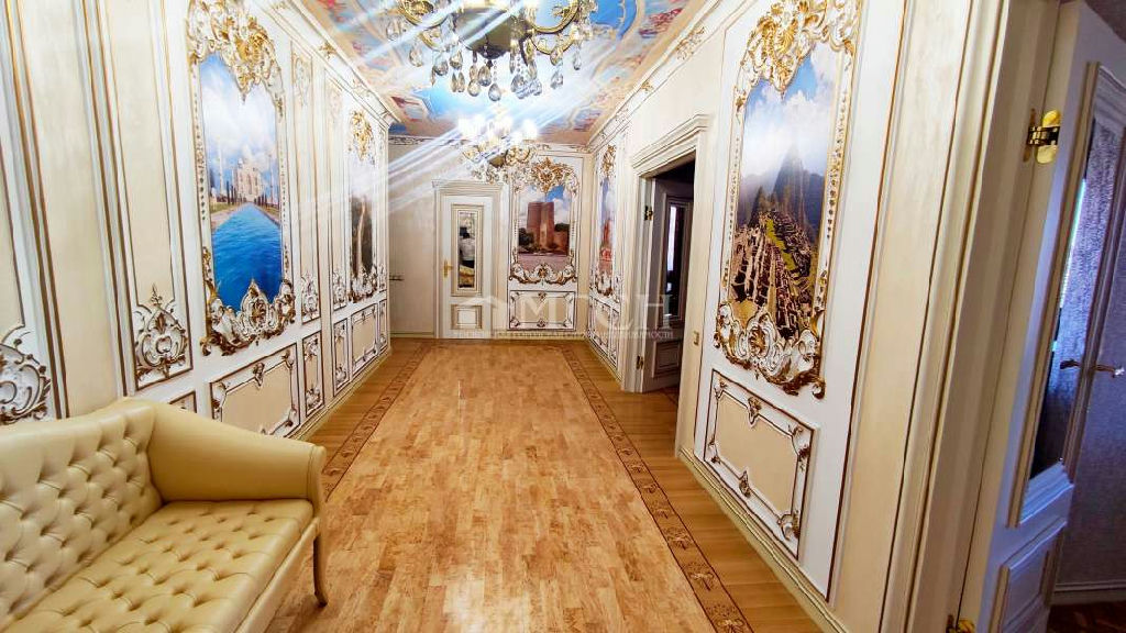 Лот 72371 Кирпичный дом 2015г постройки, в подъезде консьерж. Просторная двухуровневая квартира с эксклюзивным дорогим дизайнерским ремонтом, на стенах выполнена художественная роспись, вся мебель и техника итальянского производства, 1-й этаж: кухня, просторная гостиная, с/у; 2-ой этаж: 4 спальни, с/у с душевой и с/у с ванной. Кухонный гарнитур встроенный со всей бытовой, включая посудомоечную машину.